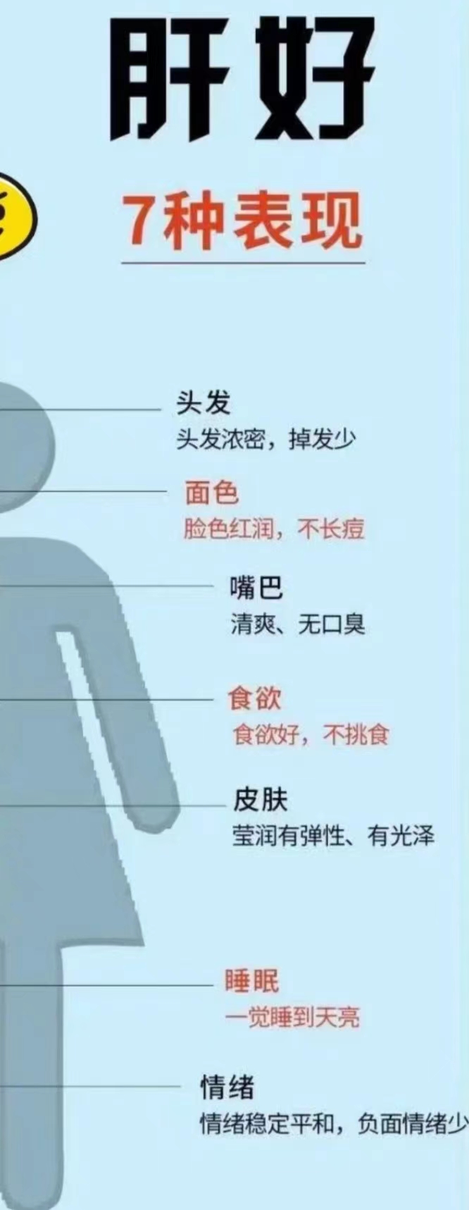肝脏健康警报 |起床后4个异常信号! 1. 小便发黄、尿味重 肝功能不佳会影响胆红素代谢,增加胆红素进入血液,导致尿液颜色变深。提示:持续性茶色尿液,可能是肝脏受损的信号。 2. 口臭 肝脏功能受影响时,血液中尿素氮和氨含量增加,导致口气中氨味加重。提示:氨是腐臭味的,若口臭持续,需警惕肝脏健康。 3. 乏力 肝细胞受损导致胆碱酶减少,影响神经、肌肉功能,即使早睡也感到乏力。提示:持续乏力可能是肝脏功能不佳的表现。 4. 视力模糊 肝血不足可能导致眼睛干涩发痒,肝火旺盛或胆汁排泄受阻可能导致巩膜黄染。提示:视力模糊、怕光,可能是肝功能问题。
